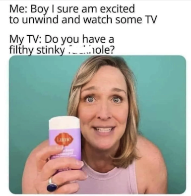First and foremost, I miss the days when the most personal thing you’d hear on a TV ad was a mother and daughter talking about a “… not so fresh feeling.” Look, I’m far from being a prude, but now every twenty minutes it’s ads for boner pills and deodorant for “down there” because apparently people don’t know how to wash their dirty crotches.